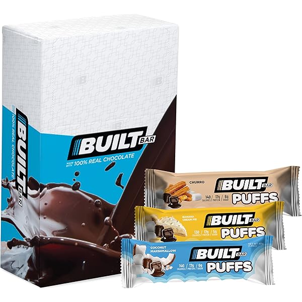 Amazon Com Built Bar 12 Pack High Protein And Energy Bars Low Carb Low Calorie Low Sugar Covered In 100 Real Chocolate Delicious Healthy Snack Gluten Free Coconut Puff Health Household